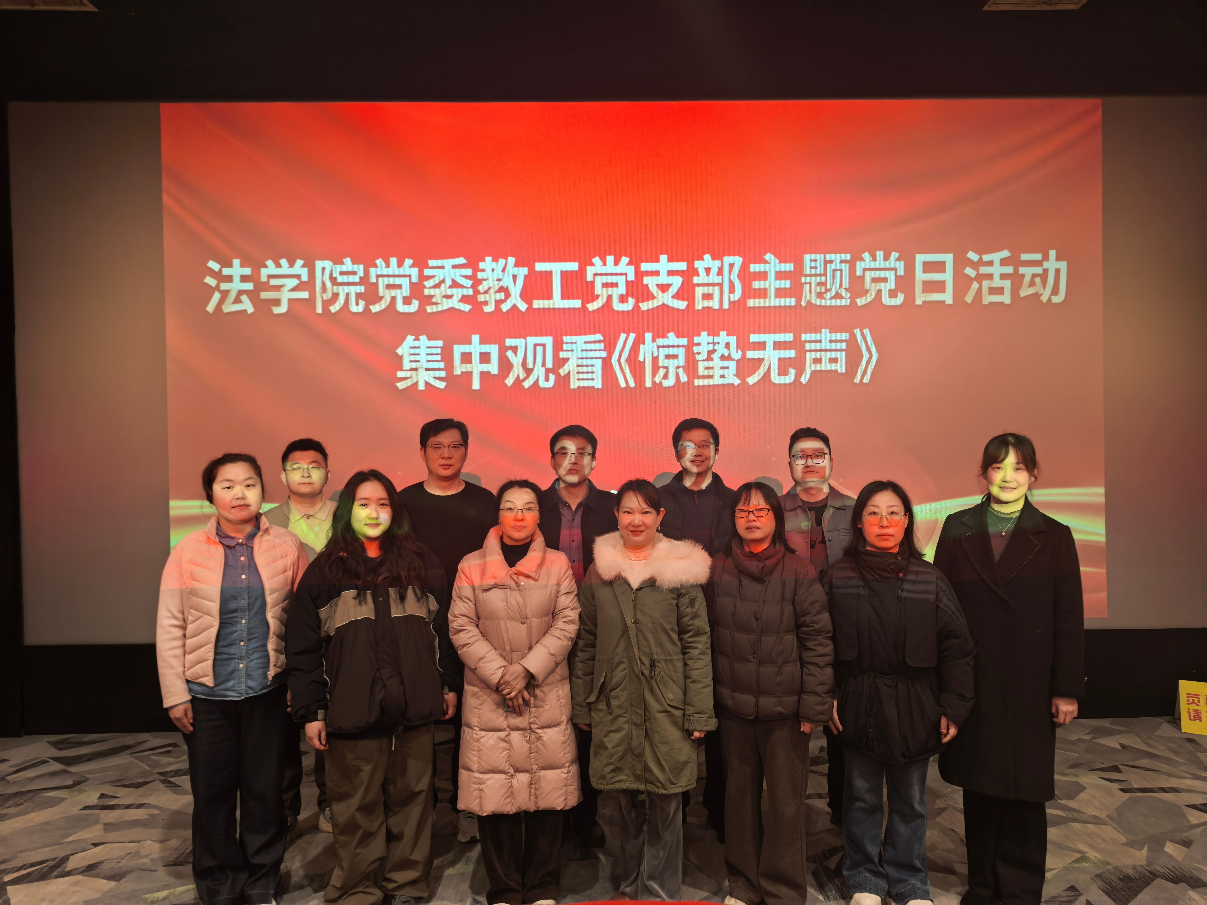 为深入学习贯彻总体国家安全观,强化党员国家安全意识与法治担当,创新党员教育形式,3月6日,法学院教工党支部组织教工党员集中观看当代国安题材电影《惊蛰无声》,以光影为媒上好了一堂生动的“电影党课”,推动党性教育与法治育人深度融合。
