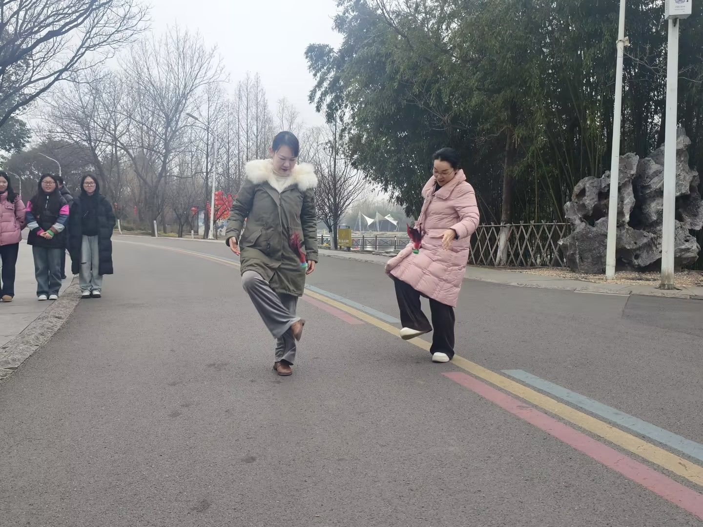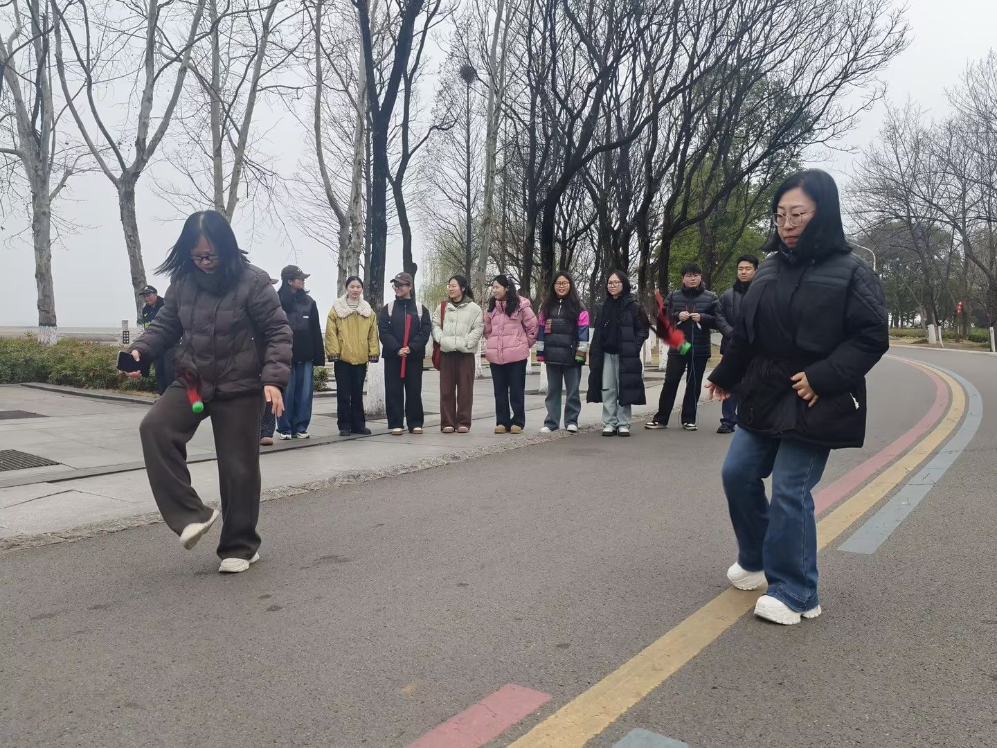 活动伊始,女教职工们有序集合、签到合影,随后在工作人员带领下开展热身运动,为环湖健步走做好准备。健步途中,大家沿湖畔小径前行,欣赏春日美景、畅谈工作生活,在轻松氛围中缓解压力、增进同事情谊。健步走结束后,跳绳、踢毽子趣味比赛将活动推向高潮。女教职工们身手敏捷、活力满满,毽子翻飞、跳绳作响,现场掌声不断,充分展现了她们健康向上、积极进取的精神风貌。活动在欢声笑语中圆满落幕,女教职工们纷纷表示本次活动既有运动的乐趣,又有集体的温暖,切实感受到了学院的关怀与重视。