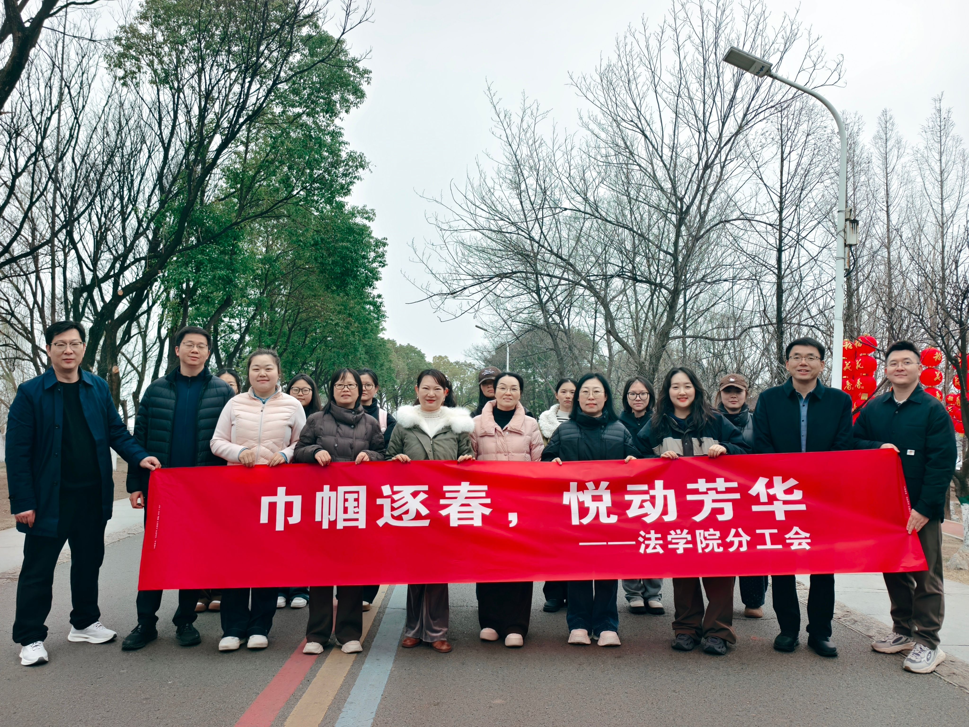 为庆祝第116个“三八”国际劳动妇女节,切实关怀全院女教职工身心健康,缓解教学科研与学生管理带来的工作压力,营造温暖和谐的集体氛围,3月6日下午,法学院分工会精心策划的“巾帼逐春,悦动芳华”主题活动在风景秀丽的白龟湖国家城市湿地公园顺利开展,全院女教职工齐聚湖畔,共庆属于自己的节日。