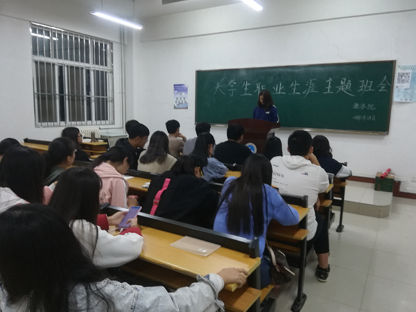 班会伊始,主持人分别从自我认识、职业认识、职业生涯规划、制定行动策略、计划修正与备选方案等五个方面进行阐述。学生们根据这些介绍开始提出自己的疑问,并积极的参与到讨论中,与大家分享自己的观点和看法,随后主持人通过案例向同学们介绍应该如何树立职业规划意识、竞争意识和危机意识,明确自己的发展方向,充实自己的大学生活,以“青春、活力”为资本,学会适应社会的变化,怀着一颗责任心埋头苦干,成功将如期而至。