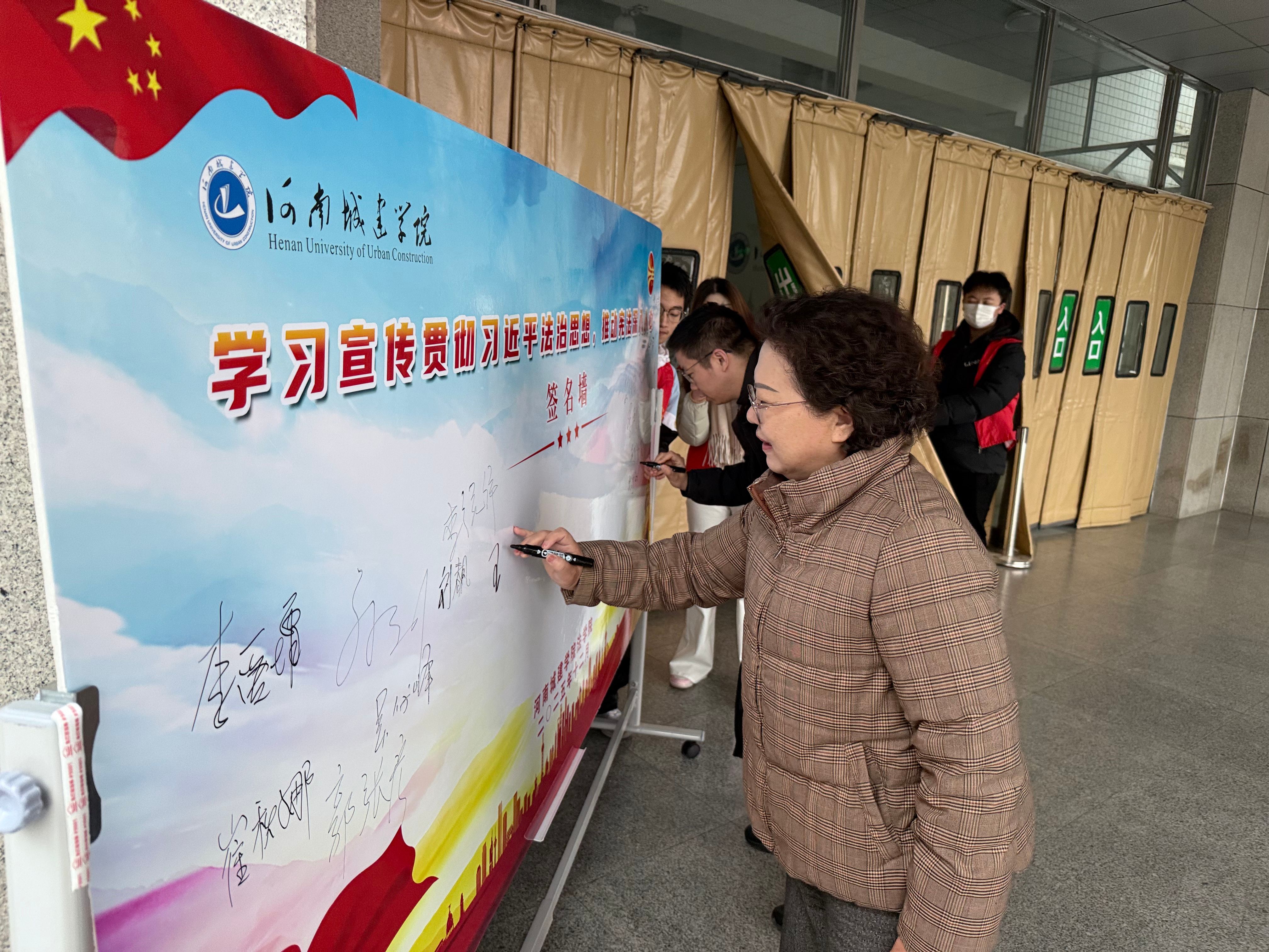 (通讯员:李艳珂、赵思琰)今年12月4日是第十二个国家宪法日。为全面落实党的二十大和二十届三中、四中全会精神,深入学习宣传贯彻习近平法治思想和习近平总书记对全面依法治国工作的重要指示以及中央全面依法治国工作会议精神,认真实施《法治宣传教育法》,加强宪法宣传教育,弘扬宪法精神,维护宪法权威,推动宪法实施,为推进中国式现代化营造良好法治环境。法学院在鹰城广场以及学校成功开展“学习宣传贯彻习近平法治思想,推动宪法深入人心”为主题的系列活动。