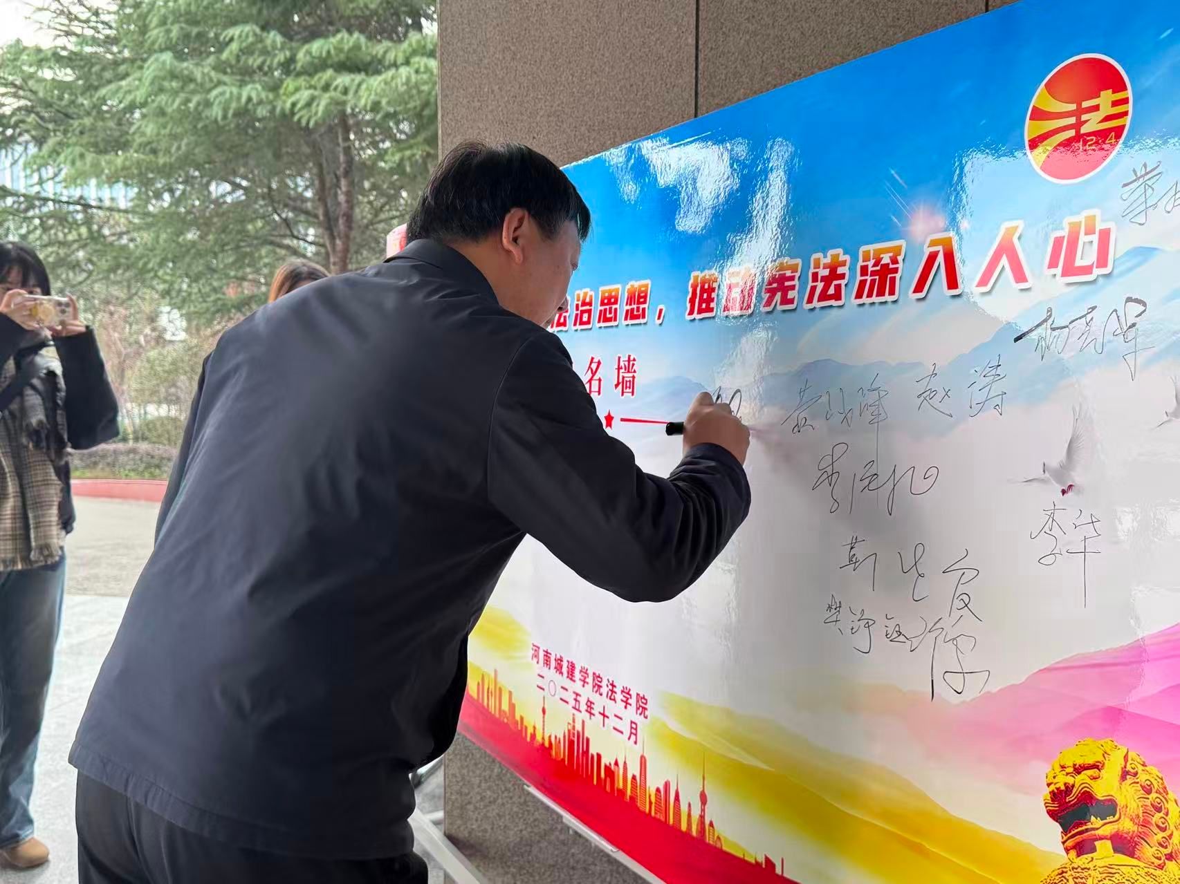 在主题签名墙前,师生郑重签上自己的姓名,以行动和决心表达要自觉维护宪法的权威,争做宪法维护者。