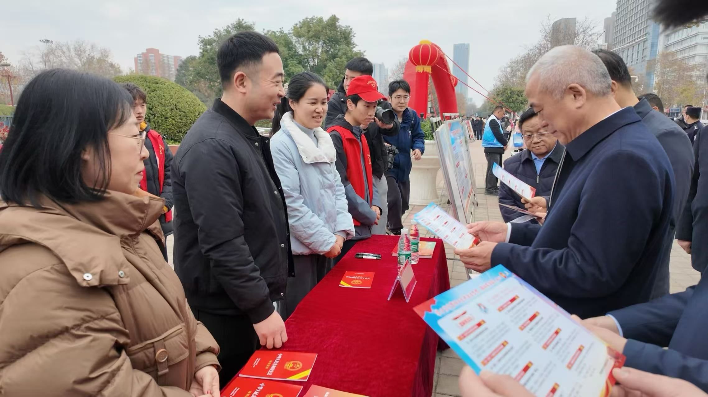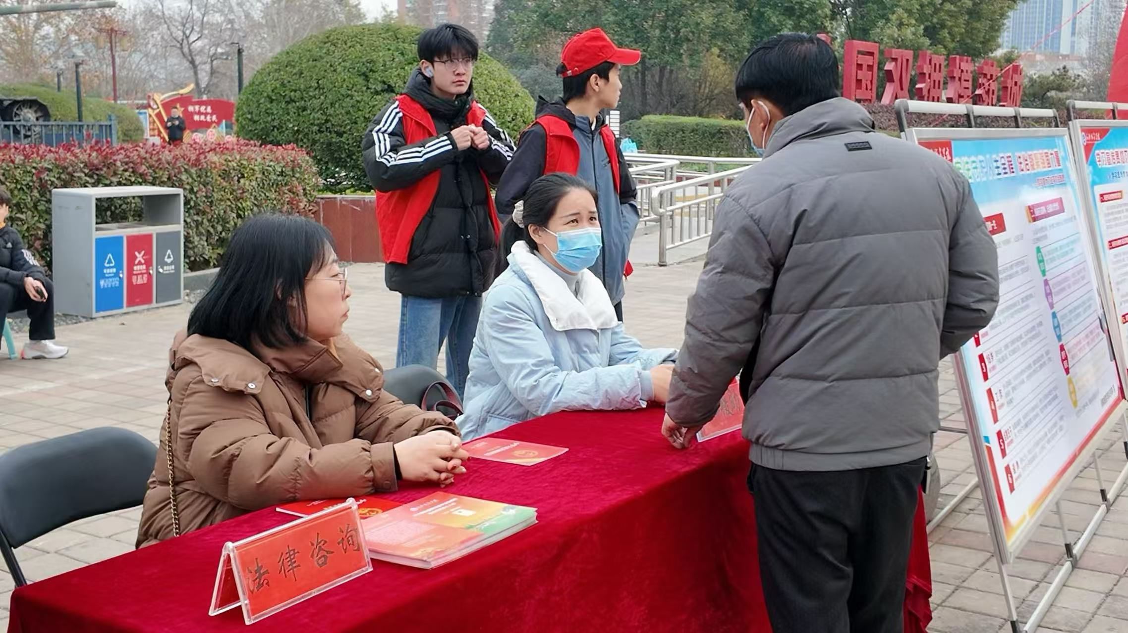 志愿者在鹰城广场通过设立法律咨询台、发放普法手册等方式,针对婚姻家庭纠纷、劳动权益保障、未成年人保护等民生热点问题提供专业细致的解答。