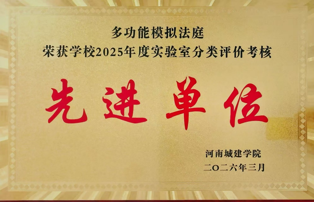 2026年4月13日,学校实验管理中心召开年度总结和培训会,揭晓了河南城建学院2025年度实验室分类评价考核结果,法学院实践教学中心管理的多功能模拟法庭成功获评校级“先进单位”,并颁发获颁荣誉牌匾。