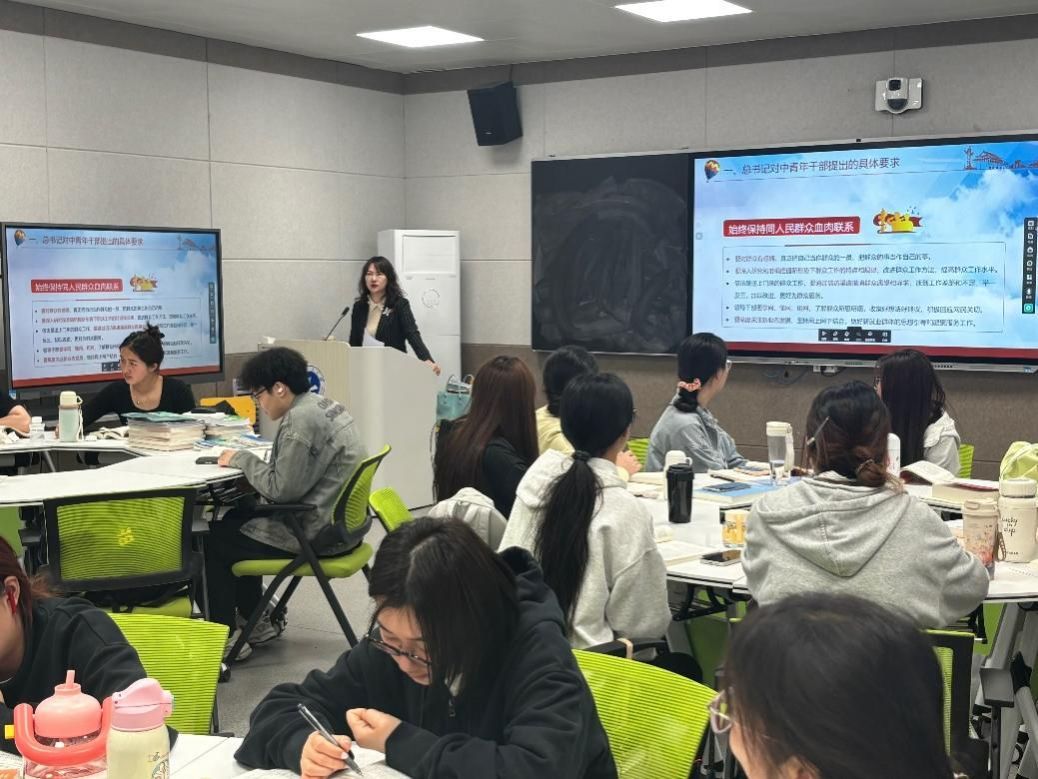 课堂上,徐娜娜结合法学专业特点与青年学生成长规律,围绕“理想信念是什么”“为什么要筑牢理想信念根基”“新时代青年应树立怎样的政绩观”三个层面展开讲解。她指出,理想信念是青年成长成才的精神之钙,树立和践行正确政绩观则是未来走向社会、服务人民的价值坐标。作为法学专业的学生,更应在坚定信仰、恪守法治、服务群众方面走在前、作表率。
