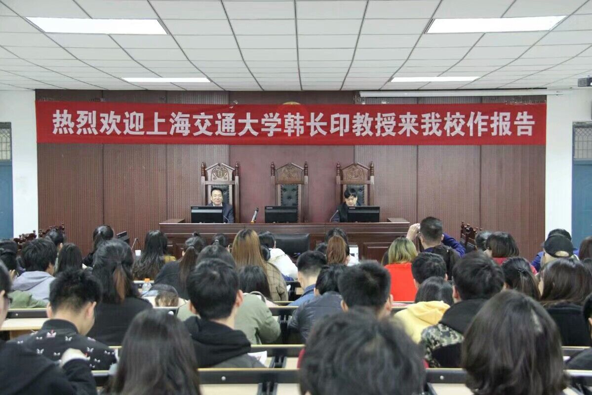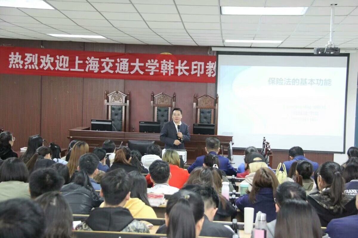 (通讯员:魏丽君 汪浩波)拓宽师生法学视野,推动法学专业发展。上海交通大学法学院特聘教授、博士生导师、上海交通大学民商法研究所所长、破产保护法研究中心、保险法研究中心主任韩长印教授莅临讲学,法学院全体师生出席。