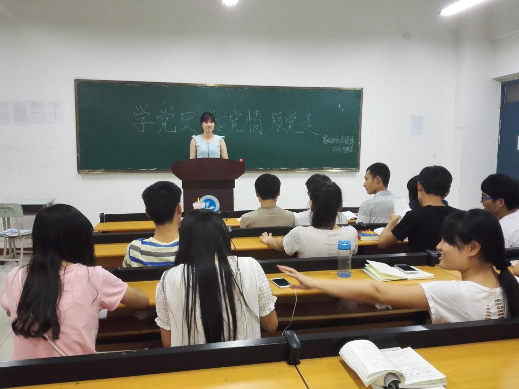 活动开始,首先由主持人向大家简单介绍党是一个先进的组织,党的成立、发展一直到壮大所走过的艰难历程。接着,大家自主学习党章知识,对党史内容,党情现状等问题都有了进一步的了解。各位同学态度认真端正,积极提高自身思想先进性。最后,主持人带领与会同学向党旗宣誓,表达自己为党服务,为党献身的热情与决心。宣誓完毕后,主持人强调了学党史知党情的重要性,指明同学们要坚决拥护党的领导,为党与国家的发展奉献力量,为学校与学院的发展献计献策!