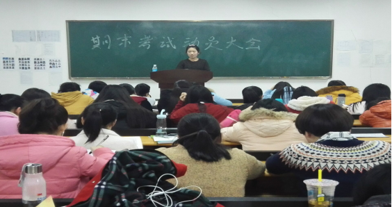 (通讯员:邓蕾 李会亚)为促使2015-2016学年第一学期期末考试工作顺利的进行,提高同学们对期末考试的重视程度。1月4日晚上7点,法学与公共管理学院在一号教学楼113室召开考前动员大会。本次大会由辅导员赵老师主持,全班同学参与。