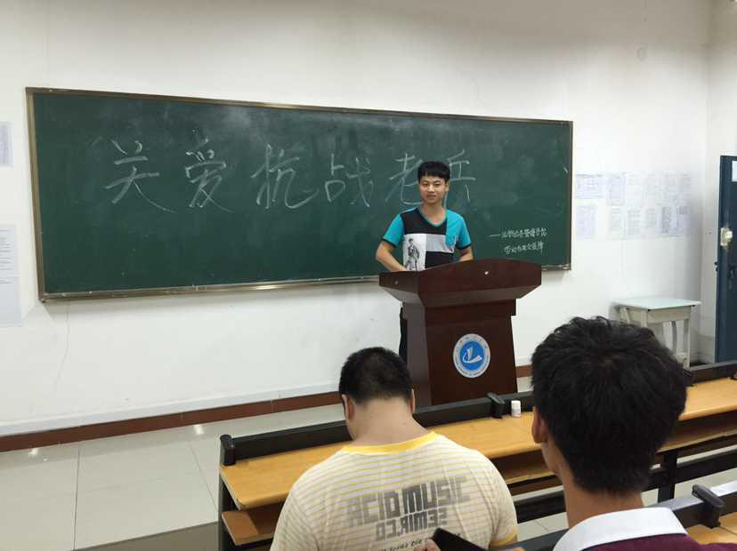 (通讯员:邓蕾 张之青云)为了纪念抗战胜利70周年、关爱抗战老兵,2015年9月7日下午4点,法学与公共管理学院举行了“关爱革命老兵,弘扬抗战精神”的主题团日活动,本次活动由法学与公共管理学院学生会组织,法学大二全体学生参与了这一活动。