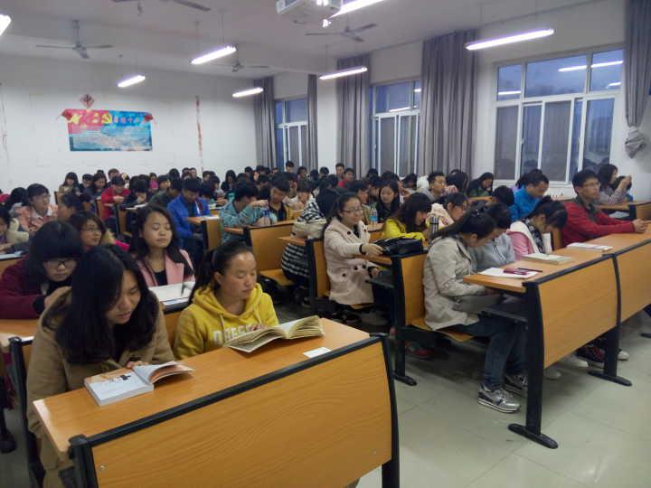 讲堂一开始,王老师先讲述了自己的一些工作经历:因为自身兴趣自学计算机,在大学生涯中通过英语考级,计算机的学习,以及不懈的努力开创了自己的教育事业。然后,王老师在讲台上用幽默的语言为我们分析大学会碰到的问题,讲解了掌握计算机技能在学习生活中的作用以及在大学最合理的生活方式。王老师提到同学们一听到计算机考试,会说自己听学姐学长说没多大用处。王老师则是以过来人的视角告诉我们资格证书在求职工作生涯多多少少都会用到。并鼓励同学们认真练习,有兴趣的可以往职业方向发展。接着,王老师讲述英语四六级考试方法,并且详细讲述了各个题型的解题技巧及练习方法,自己四六级的考试及复习经验。“六点钟还不起来,这一天就废了,年轻人应当是朝气蓬勃,对生活充满希望。”这是王老师对学习生活的理解。