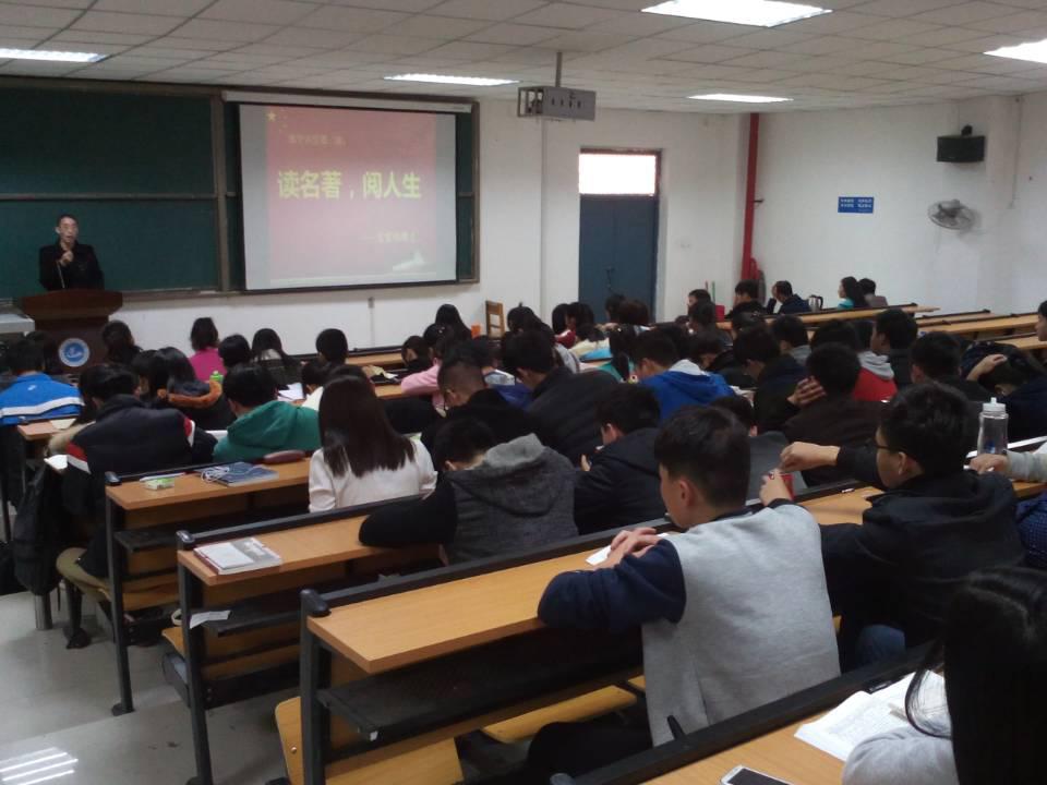 为加强学生的素质文化修养,全面提高青年学生的综合素质,2014年11月12日下午2点,法学与公共管理学院邀请了甘宏伟老师在1号教学楼428室开展博学讲堂第二讲,此次讲堂的主题是:读名著,阅人生。法学与公共管理学院团总支书记邓蕾和100余名师生出席了本次讲座。