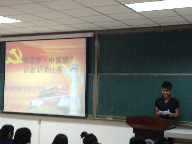 (通讯员 邓蕾 薛友超 )2013年6月4日晚,法学与公共管理学院在文学院1#教学楼426教室举办了以“青春梦 中国梦”为主题的朗诵演讲比赛。