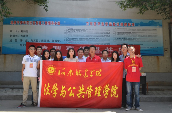 2013年5月11日,河南城建学院法学院来到平顶山市卫东区优越路街道地质社区开展义务法治宣传进社区活动。本次活动由法学院党总支副书记李闯豪带队,法学院团总支书记邓蕾、学工办主任刘建华以及法学专业教师和数十名志愿者共同参加了此次活动。