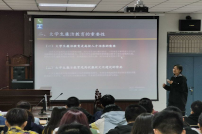团支部书记苌佳星和郝丹照向同学们集中讲述了廉洁的内涵,阐述了为什么大学生需要接受廉洁教育。通过介绍一些因贪污犯罪而被党和国家严厉制裁的官员们的案例,以及重温历史长河中为国为党奉献青春、奉献生命的仁人志士的廉政故事,让同学们深刻认识到提高廉洁意识的重要性。最后,团支部书记播放了有关廉洁教育短篇视频。
