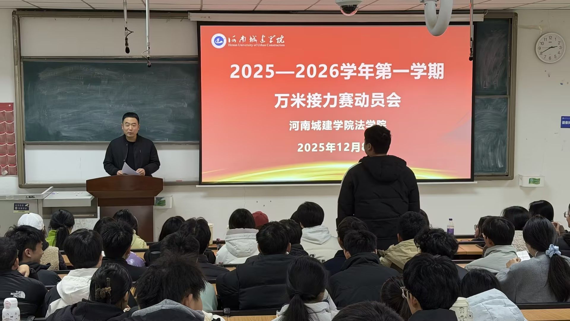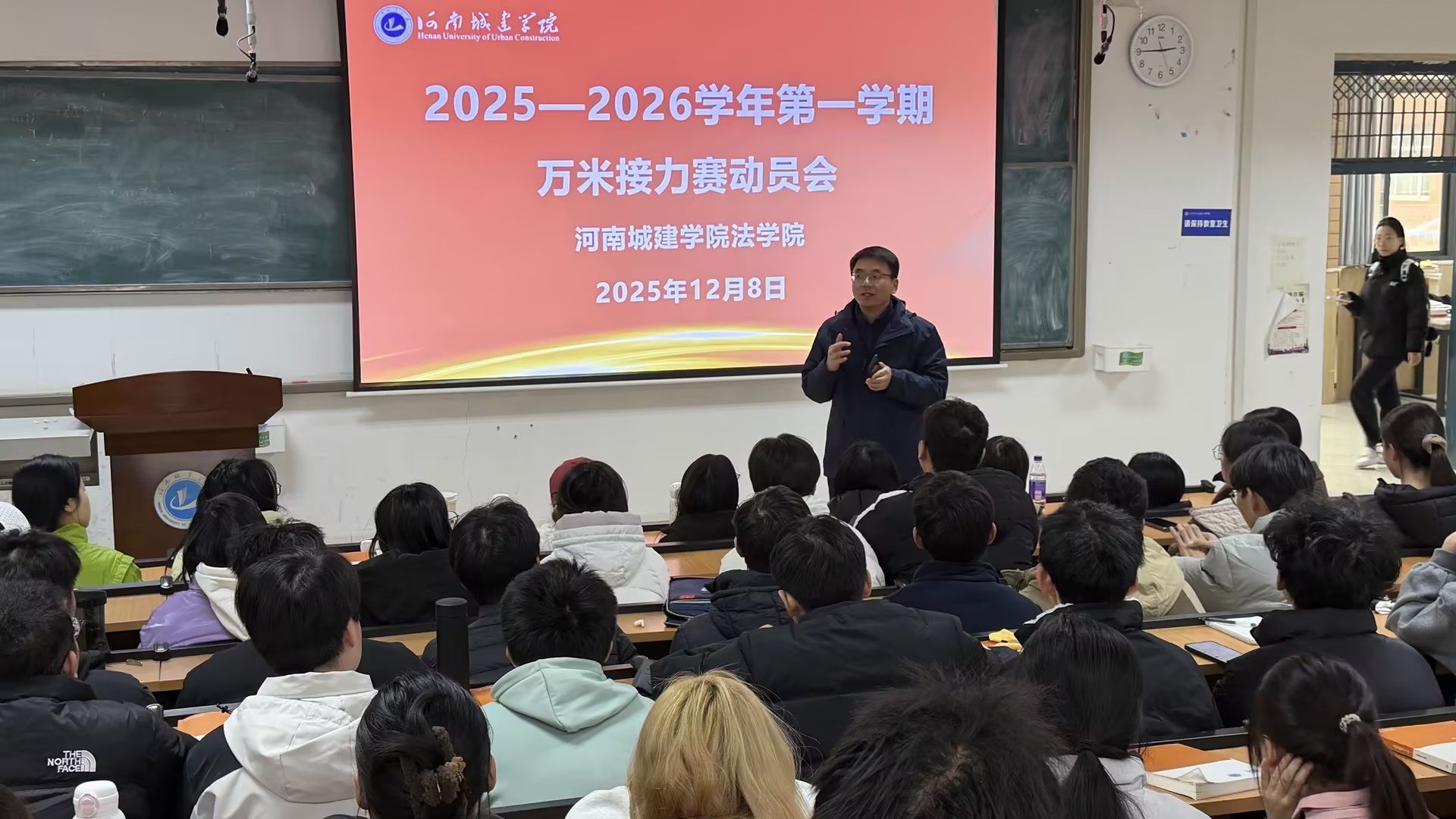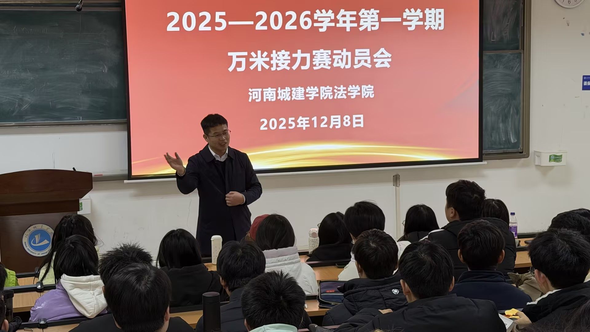 12月8日,法学院在428教室召开万米接力赛动员会。法学院党委书记苗道华、党委副书记吴锦展、团学办副主任刘宏伟及全体参赛运动员、学生干部齐聚一堂,以凝聚共识、鼓舞士气为目标,为即将到来的12.9万米接力比赛做准备。