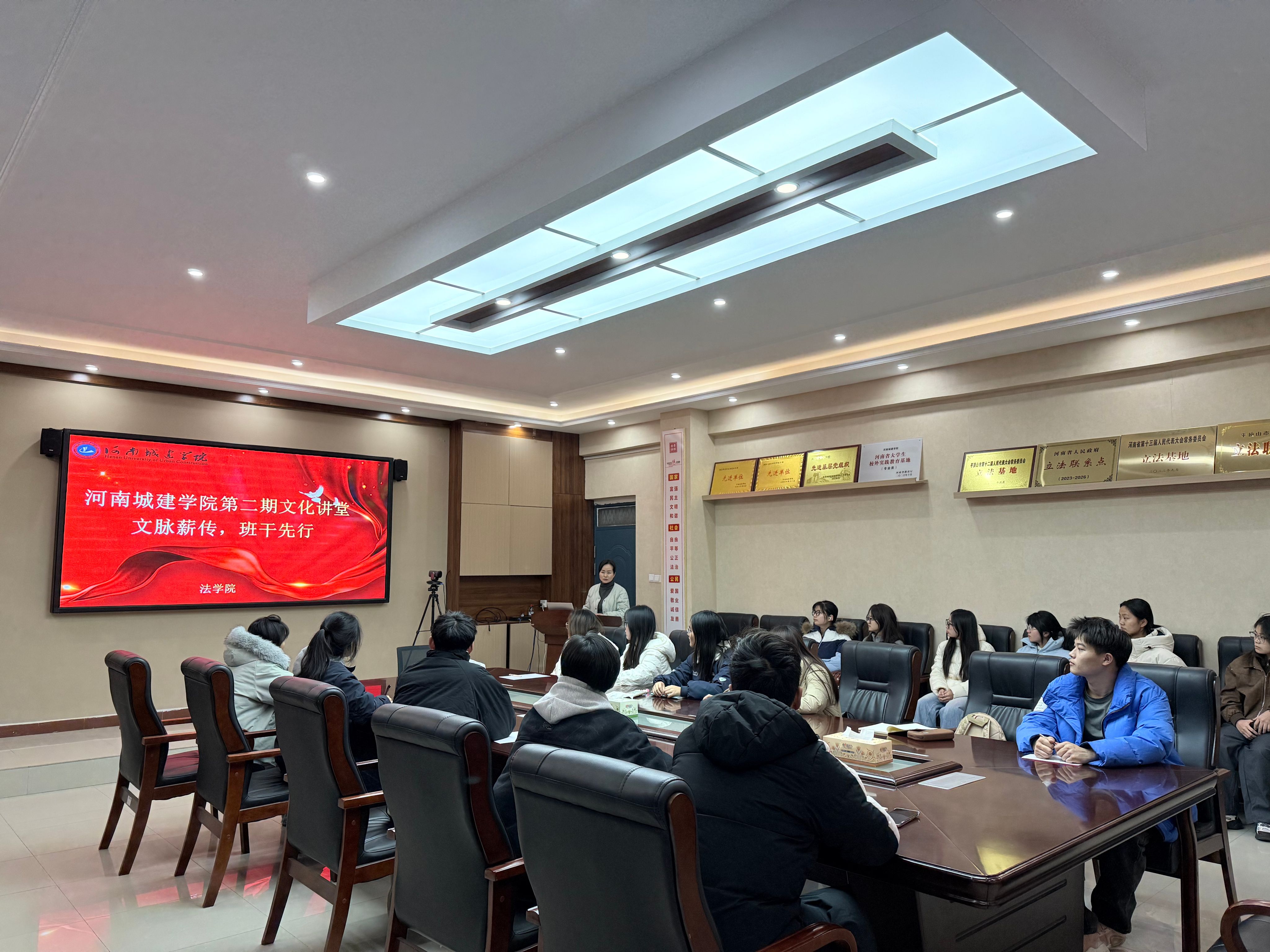 2025年12月4日晚,我校在1号楼422会议室举办以“文脉薪传 班干先行”为主题的第二期文化讲堂。活动由校文明办主办、法学院承办,学生骨干代表40余人参加活动。